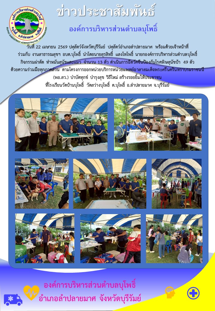 ปศุสัตว์จังหวัดบุรีรัมย์ ปศุสัตว์อำเภอลำปลายมาศ พร้อมด้วยเจ้าหน้าที่ ร่วมกับงานสาธารณสุขฯ อบต.บุโพธิ์