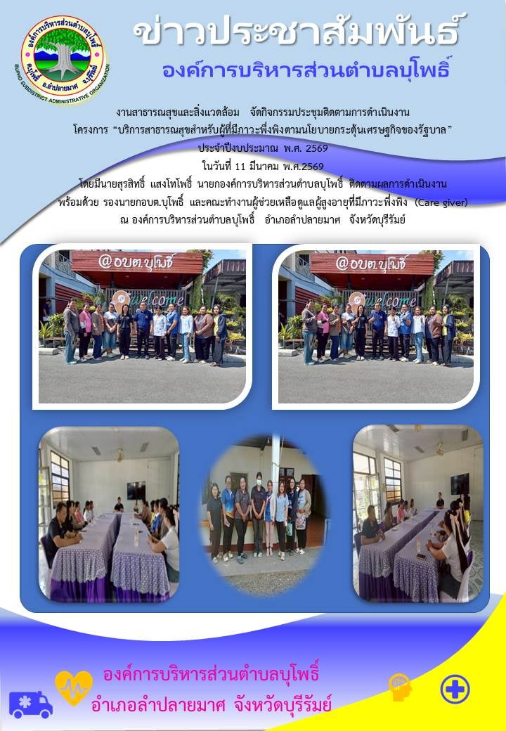 งานสาธารณสุขและสิ่งแวดล้อม จัดกิจกรรมประชุมติดตามการดำเนินงานโครงการบริการสาธารณสุขสำหรับผู้ที่มีภาวะพึ่งพิงตามนโยบายกระตุ้นเศรษฐกิจของรัฐบาล ประจำปีงบประมาณ พ.ศ.2569